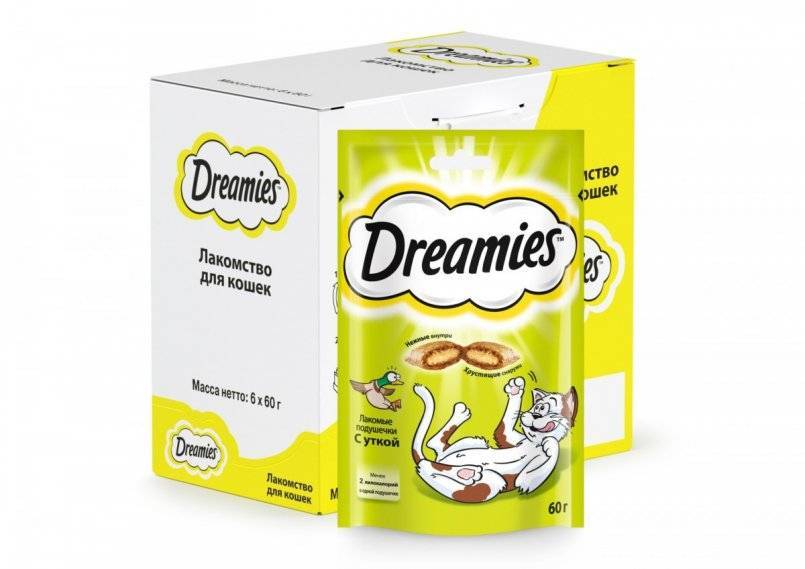 - Сухие. Это подушечки, которые могут быть хрустящими и иметь вкусный наполнитель, соломка из настоящего сушёного мяса или рыбы, колбаски, сухарики и даже печенье. Такие лакомства используют для воспитания и дрессировки кошек или в качестве поощрения.
