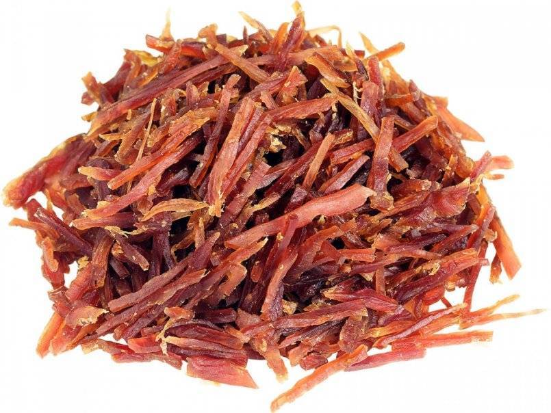 - сушеные субпродукты – лакомства, изготовленные из субпродуктов животного происхождения (рубец, говяжьи кишки, печень), часто используются для восполнения недостаточной нагрузки на зубы и десны при кормлении жидкими кормами;