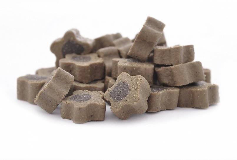 - подушечки – угощение представляет собой хрустящее лакомство с мягкой начинкой, в состав которой нередко добавляют минералы, витаминизированные комплексы и мальт-пасту;