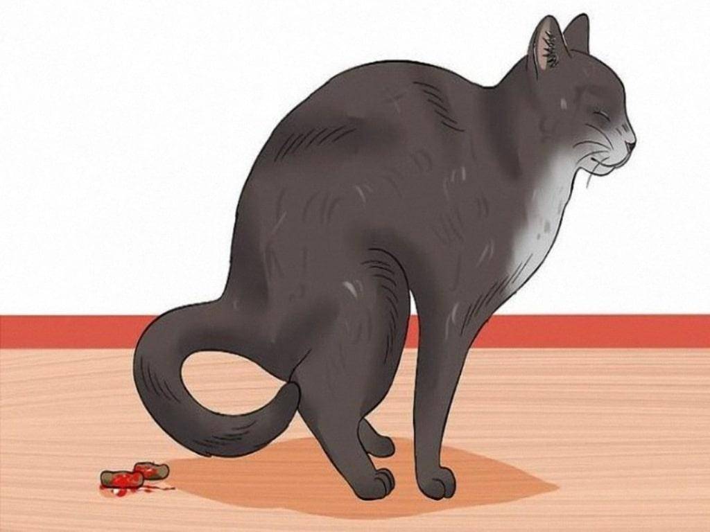 - боли в животе, которые проявляются необычными для кошек позами – лежа на животе с вытянутыми конечностями, сидя, сгорбившись;