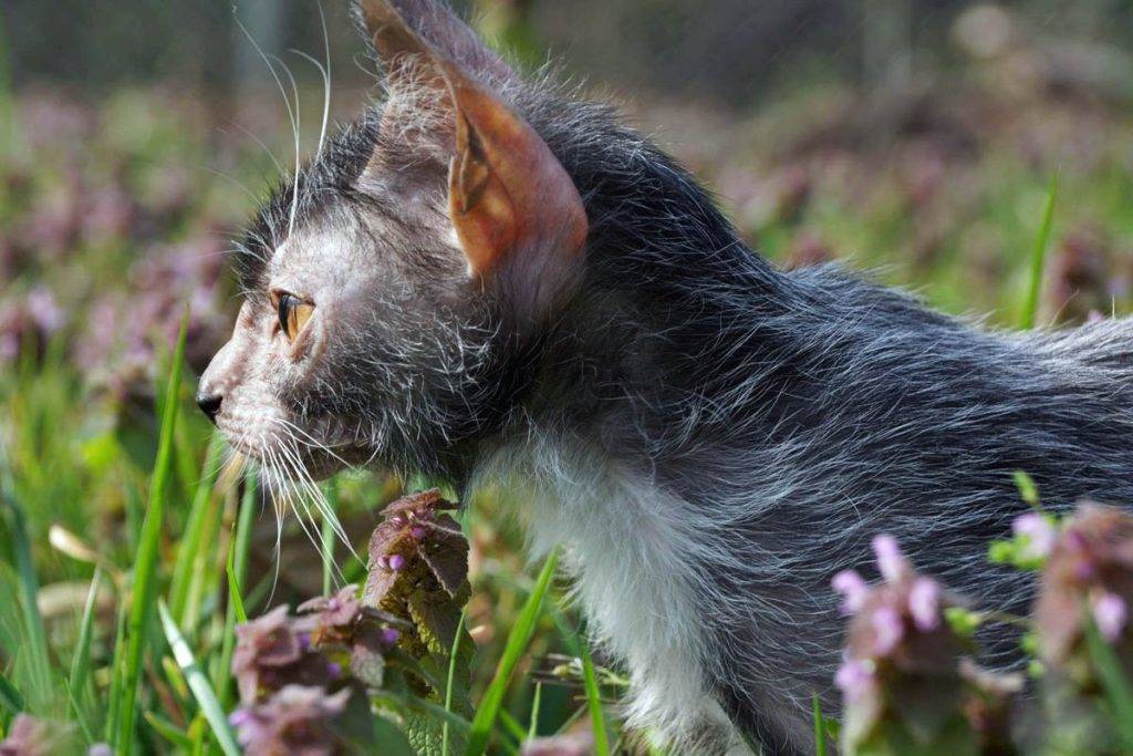 Котята породы ликой рождаются абсолютно черными, со временем начинают появляться первые седые волоски – остевой волос. Удивительно, что обычно такой волос можно встретить у собак, что делает кошек-оборотней еще более таинственными.