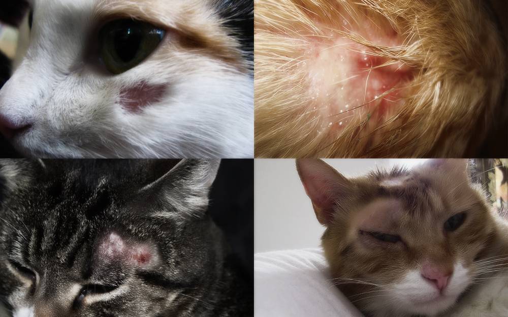 Также данное заболевание имеет мокнущую форму и сухую, характеризуются они такими симптомами как покраснения кожи, сильный зуд, могут образоваться пузырьки наполненые серой жидкостью, кошка может стать агрессивной, шипеть и царапаться при попытке осмотра кожи.