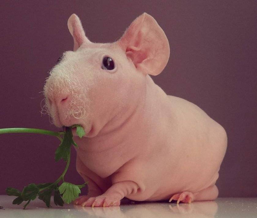 Голые или бесшерстные породы свинок всего две — скинни и болдуин. Они пользуются большой популярностью среди любителей домашних животных и прекрасно подходят, если в доме кто-то из членов семьи страдает аллергией.
