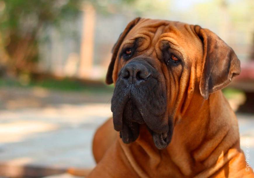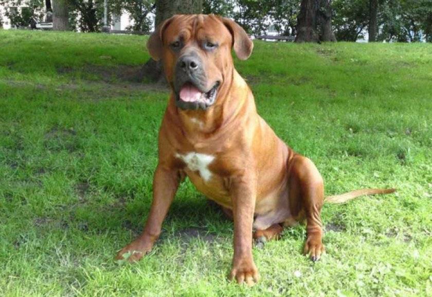 Прекрасный домашний питомец. Некрупный – 50-60 см с весом 50-60 кг. Окрас – любой, характерна черная маска, черные пятна на ушах и нагрудные пятна. Получен как плод вязки Бульдога и Мастифа.