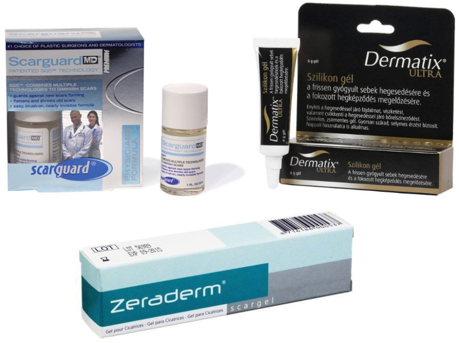Силиконовые мази Дерматикс ультра, Кело коут, Зерадерм ультра, Скарсгард убирают шрамы за счет «парникового эффекта». Они создают пленку, которая препятствует испарению влаги и помогает: