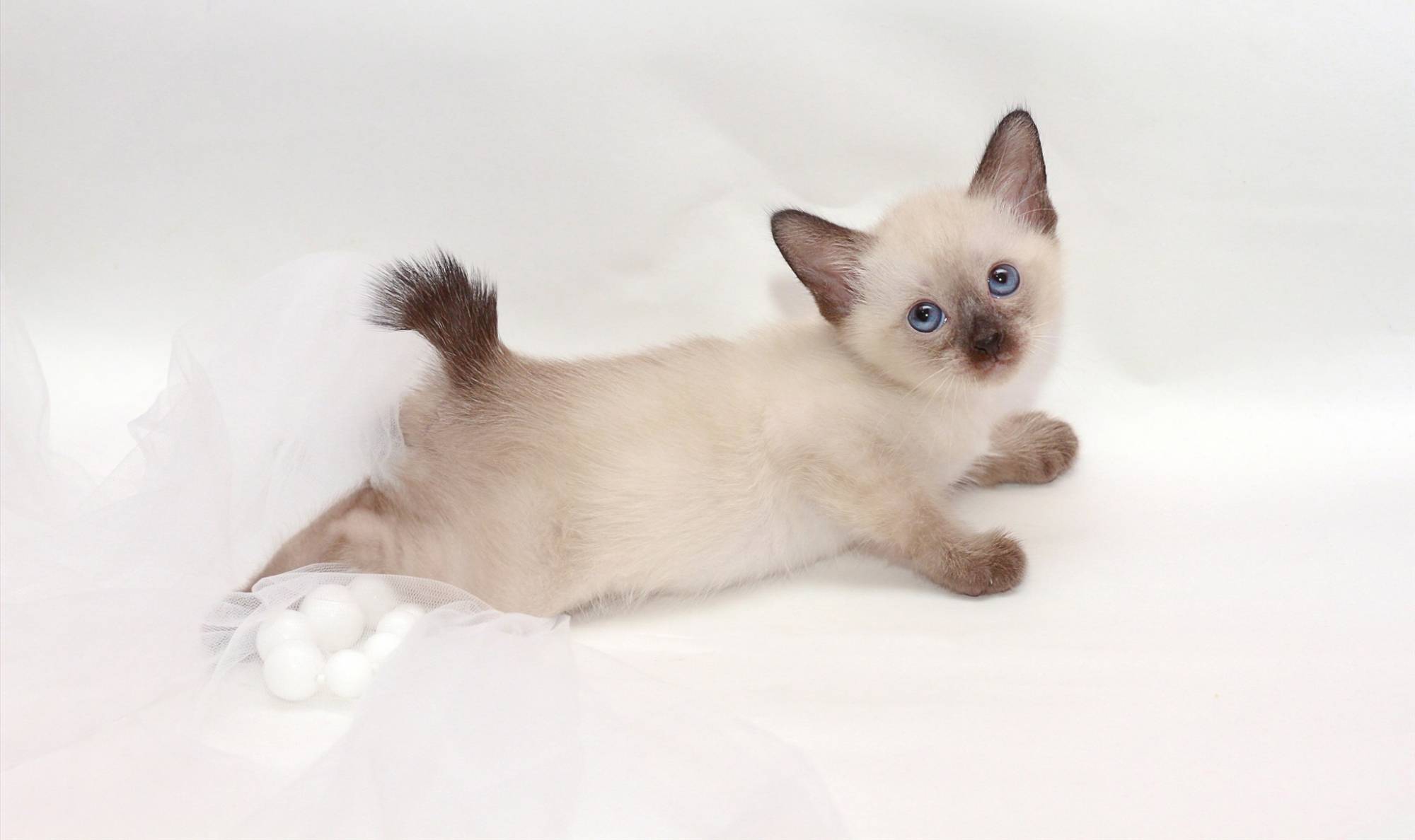 - К трём месяцам у котёнка с рождения белого уже обозначается на маске морды, ушах, лапках, хвосте характерный окрас.