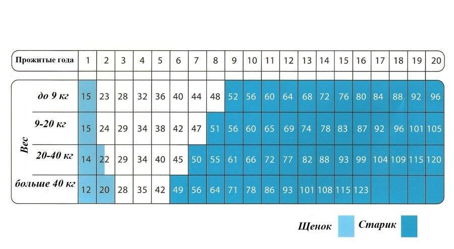 Для мелких собак приемлем расчет, при котором год собаки приравнивается к 5 годам человека. Для средних пород наиболее подходит соотношение 1:6.