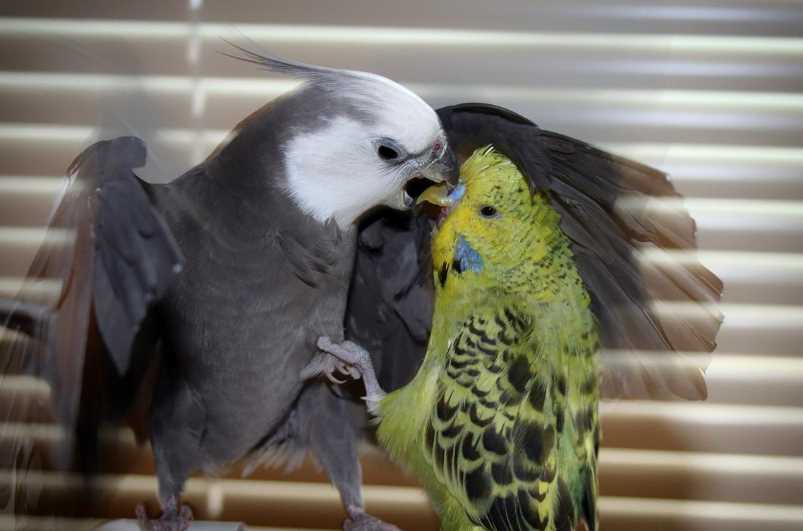 Как уже говорилось ранее, насколько приживутся вместе разные виды попугаев, зависит во многом от темперамента птиц. Среди шустрых волнистиков иногда встречаются полные флегматики, а среди спокойных мирных корелл могут попадаться «живчики», не способные усидеть на месте и минуты. Если у вас в доме две активные птички, между ними могут возникать конфликтные ситуации. В таком случае лучше на некоторое время ограничить их общение, например, расставить клетки в разные комнаты. При этом птицы не должны встречаться и во время прогулок.