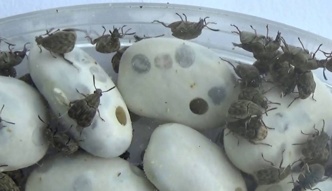 Насекомое фасолевая зерновка небольшого размера (2-5 мм) поражает плоды фасоли помещая на поверхности продолговатые яйца белого цвета (до 0.6 мм). Пораженные семена зерновкой не пригодны для посадки и употребления в пищу.