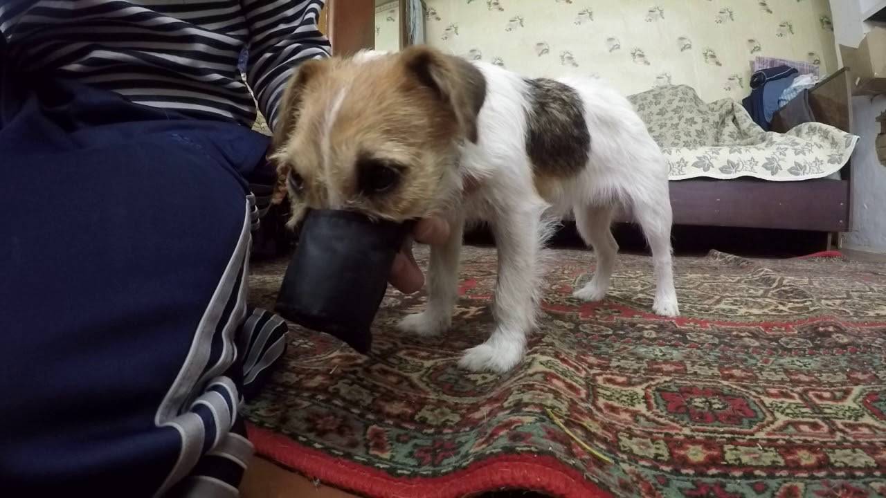 Надев намордник, сразу нужно поиграть с ним — побороться, дать несколько команд. Для начала достаточно 2-3 минут, после чего надетый аксессуар можно будет снять. На следующий день время можно увеличить, постепенно доводя до 10-15 минут.