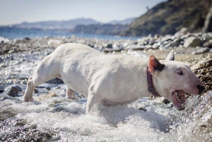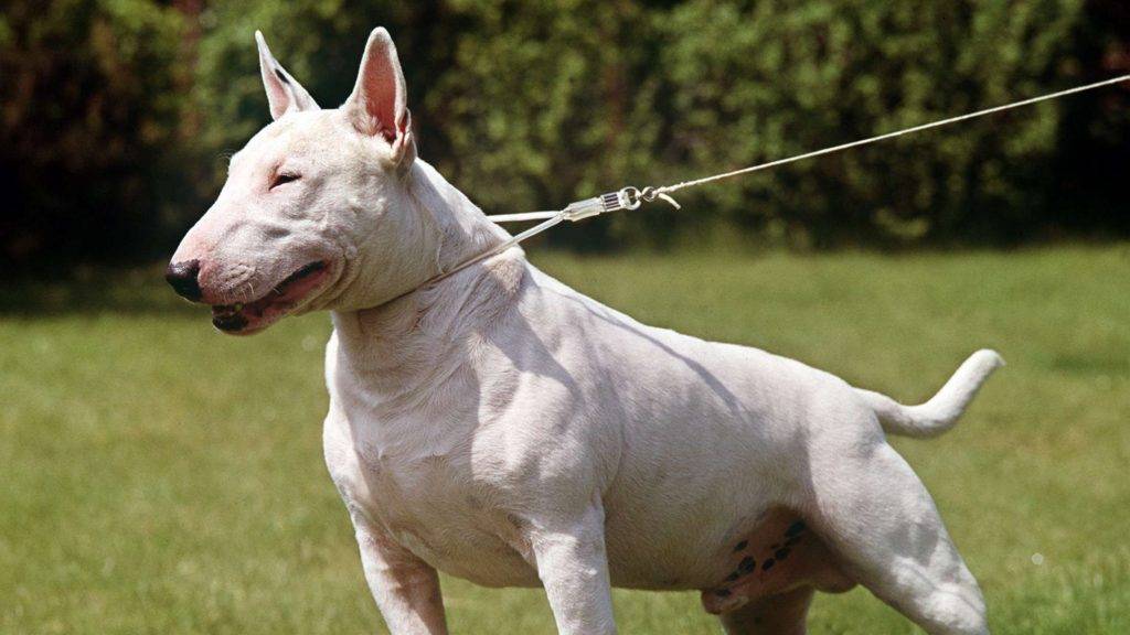 Среди многих людей бытует мнение, что бультерьер — опасная собака, ведь изначально она была выведена в качестве активного бойца и, конечно же, не утратила со временем сильных черт своего характера.