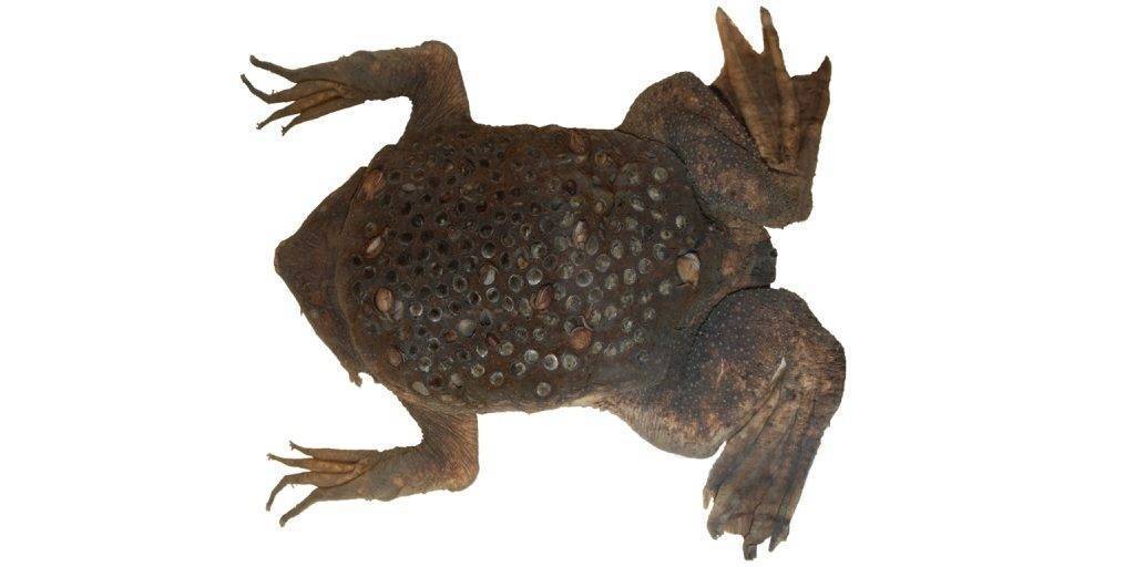 Эта жаба относится к виду земноводных. Проживают они на Юге Америки. Основное время эти жабы проводят в воде, хотя могут похвастаться хорошо развитыми легкими и грубыми кожными покровами. Такие признаки характерны для наземных видов животных. Тело Пипы имеет плоскую форму. Треугольная голова жабы постепенно переходит в тело, длина которого варьируется от 12 до 20 см. Живут в реках и озерах.