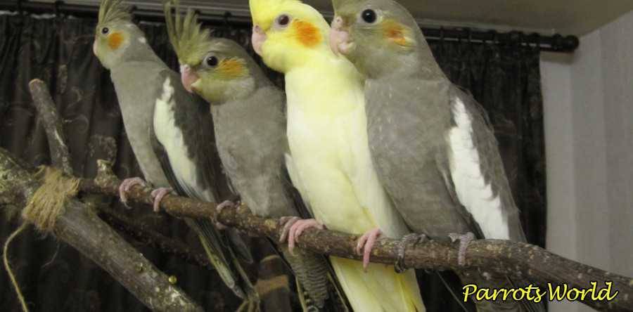 Очень выразительная мутация, она появляется от скрещивания серых самцов с самками альбино. Результатом селекции становятся белые кореллы с солнечно-желтым отливом перьев. Глаза у таких величавых особей привычно черные. Как распознать белого самца? Рулевые перья у него на хвосте белые, без примесей.