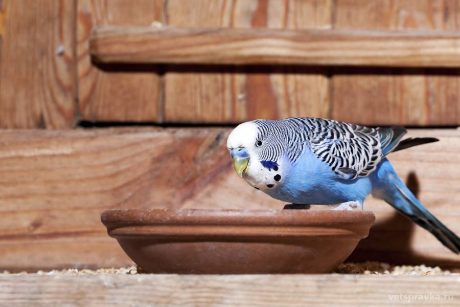 Не забывайте, что вода — обязательная и крайне важная часть питания птицы. Специальная ёмкость, размещённая внутри клетки, постоянно должна быть наполнена свежей и чистой водой, менять которую следует ежедневно. Лучше всего использовать не кипячёную, а отфильтрованную или бутилированную жидкость.