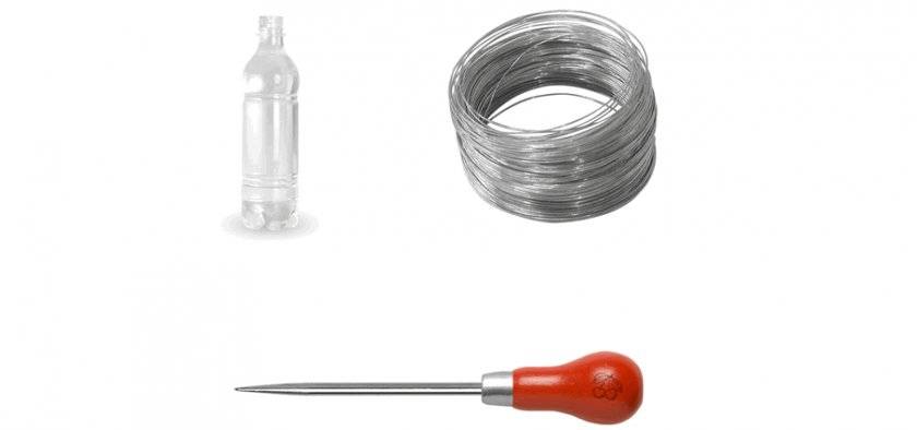 При изготовлении крепежа из проволоки для ёмкости с водой нужно следить, чтобы не было острых и торчащих её концов, о которые птички могут пораниться.