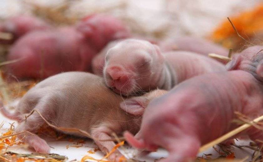 Первый осмотр приплода проводят после родов, считают живых особей, убирают из клетки мертворождённых.