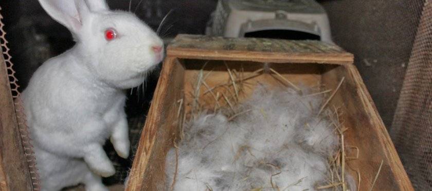 Крольчиха начинает вырывать пух с груди и брюха, которым затем станет утеплять гнездо. С постройкой гнезда будущей маме можно и помочь. Вполне подойдут деревянные ящики с соломой, их нужно поставить внутрь клетки, после чего крольчиха обустроит его по собственному вкусу. Дерево — лучший материал для изготовления маточников благодаря экологичности, чего нельзя сказать о пластиковых емкостях, которые часто предлагаются к использованию в качестве основы кроличьего гнезда. Пластик может вызывать аллергию, к тому же, животные могут отравиться или пораниться, если станут грызть (а это случается) изделие из ненатурального материала.