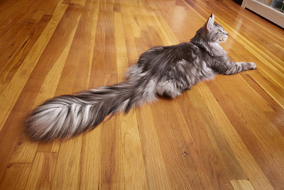 Длина хвоста отличается в зависимости от породы, размеров тела и половой принадлежности. У котов он, в среднем, достигает 28 см, у кошек – 25. Обладатель самого длинного даже занесен в «Книгу рекордов Гиннеса». Длина его предмета гордости составляет 44,66 см.