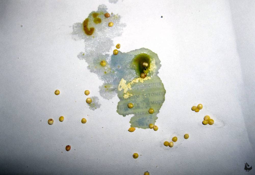 Не стоит пугаться, если иногда в птичьем помете вы замечаете много влаги. Такое бывает, когда попугай пьет кипяченую воду и лакомится сочными фруктами, которые слабят кишечник. Сама птица при этом чувствует себя хорошо, много двигается, щебечет. Следует заподозрить неладное, если резко меняется характер и частота испражнений: в кале появляются примеси пены, крови, слизи. Жидкий помет приобретает зеленую, белую или желтую окраску, а его запах становится невыносимым.