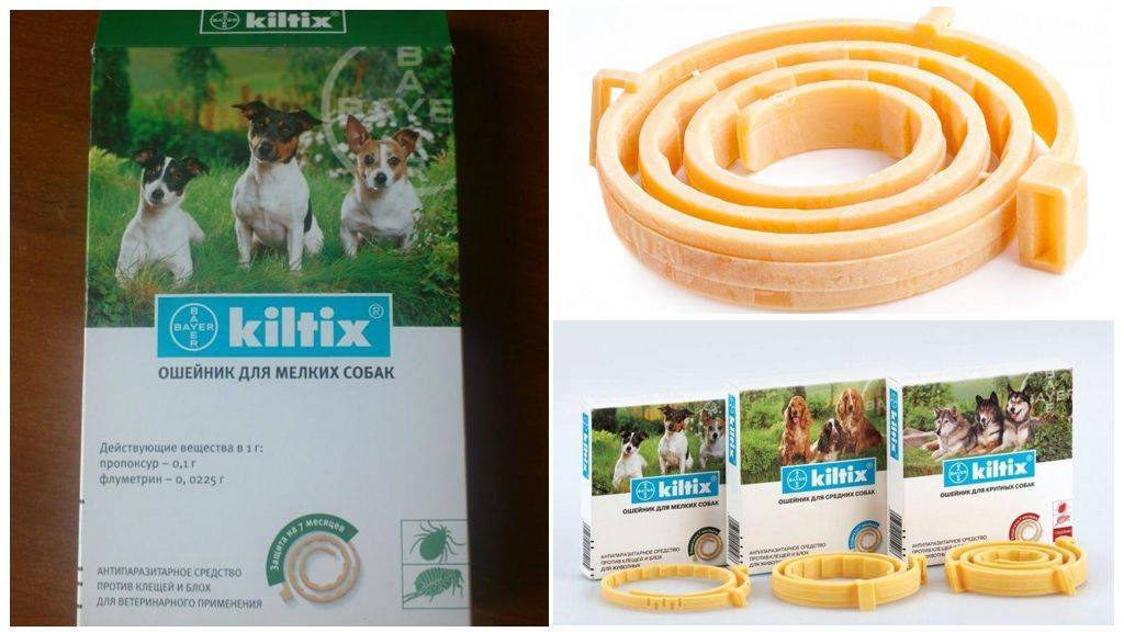 Ошейник Килтикс немецкого бренда «Bayer». Компания выпускает изделия разных размеров – для небольших, средних и крупных собак. Действующие вещества – флуметрин и пропоксур оказывают защиту от паразитов на протяжении 6-7 месяцев. Для животного опасности они не представляют. Цена продукции – 700-1000 руб.