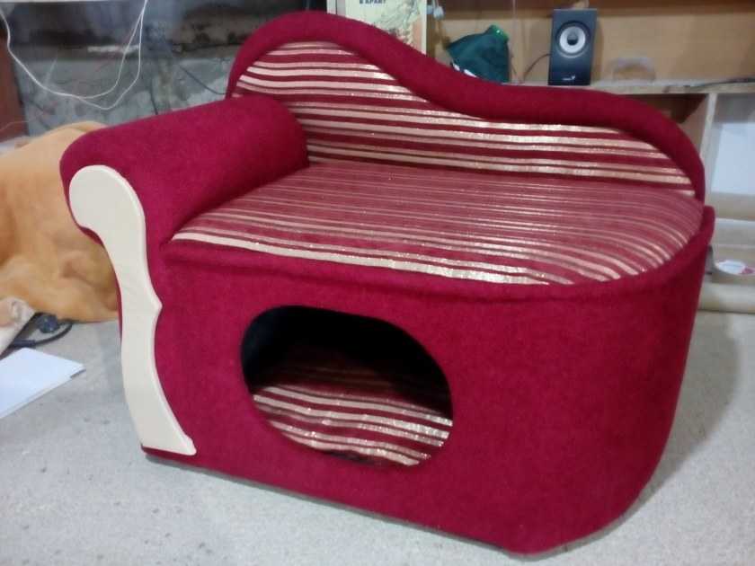 Для самых маленьких лучше сразу купить вариант на жёстком каркасе из дерева или металла. Этот же вариант нужно рассматривать, если в доме холодный пол или у питомца есть проблемы с почками. Внутреннее пространство такой лежанки выстилается мягким матрасиком нужного размера со сменными чехлами – можно иметь зимний и летний варианты.
