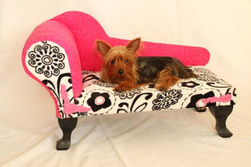 - Цветовая гамма. Лежанки для мелких пород собак часто разукрашивают в самые немыслимые цвета. Самому питомцу этот момент безразличен, а вот хозяину стоит учесть, что на светлой материи пятна, капли слюны, следы грязных лап будут очень заметны. Если тёмная лежанка не выглядит достаточно симпатично, можно просто сшить для неё несколько ярких сменных чехлов.