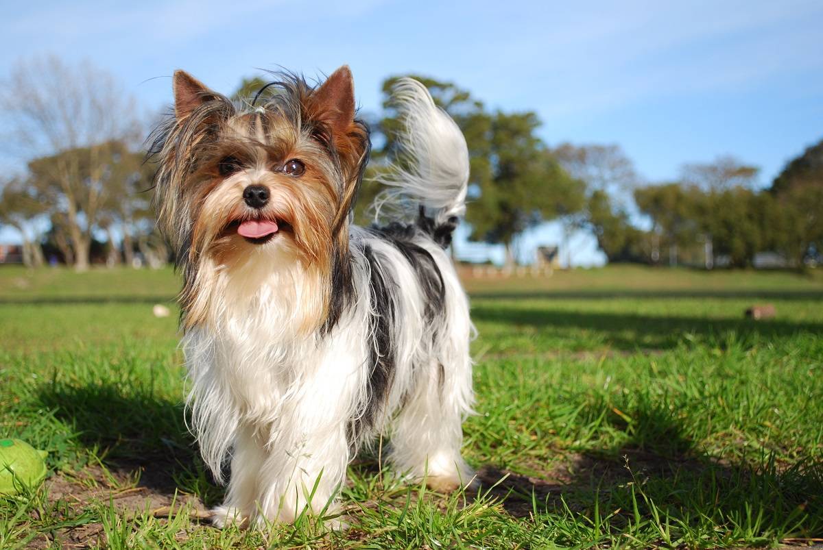 Отдельно следует упомянуть бивер йоркширских терьеров, имеющих черно-белую шерсть на корпусе и черно-бело-золотую на голове.