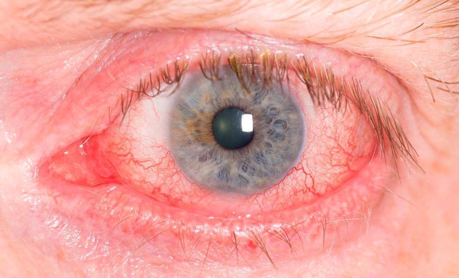 - сильное покраснение глазного яблока;