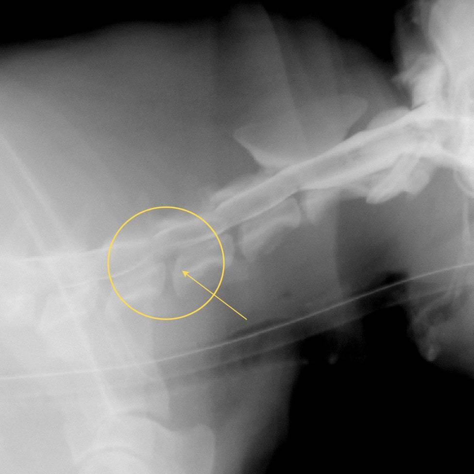 При проявлении только шейного болевого синдрома или начальной стадии неврологического дефицита мы применяем консервативное (безоперационное) лечение шейной дископатии, которое включает в себя ограничение физической активности животного (вплоть до клеточного содержания), нестероидные противовоспалительные препараты, кортикостероидные препараты и др. Целью такого лечения является купирование симптомов заболевания (боль, дискомфорт, отек в области грыжи межпозвоночного диска и др.), но не направлено на причину заболевания — собственно саму грыжу, поэтому остается риск прогрессирования заболевания.