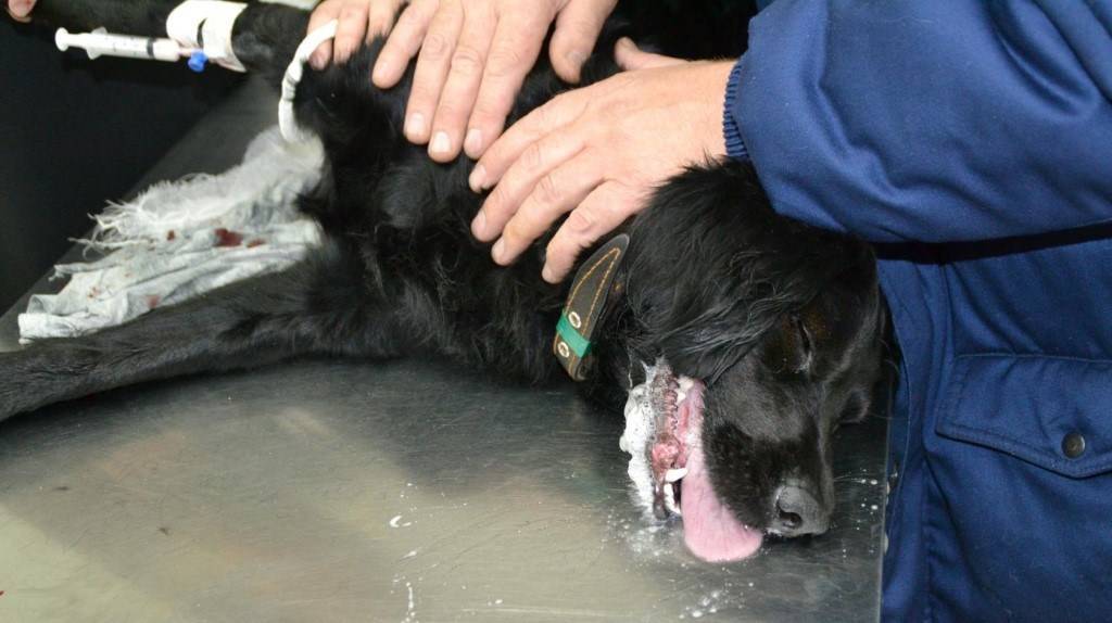Если у домашней собаки пена изо рта возникла на прогулке, то от качества оказания первой медицинской помощи зависит жизнь животного. Первое, что нужно экстренно сделать, это промыть желудок. Подойдет любая вода, а если в неё удастся добавить активированный уголь или марганцовку, то это будет плюсом.