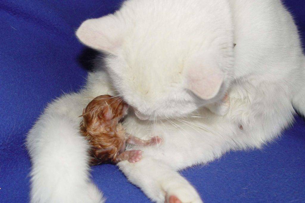 Во время выхода котенок иногда застревает, и требуется помощь владельца или ветеринара. Неосторожные манипуляции могут привести к разрыву матки. При извлечении котенка обязательно использование смазывающих веществ, а помогающие рывки необходимо совершать только во время потуг кошки.
