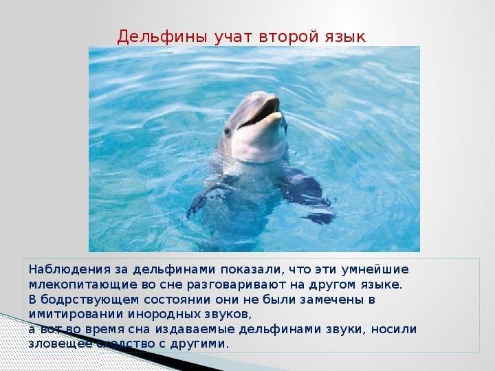 Однако, несмотря на многочисленные исследования, полностью расшифровать язык дельфинов до настоящего времени так и не удалось.