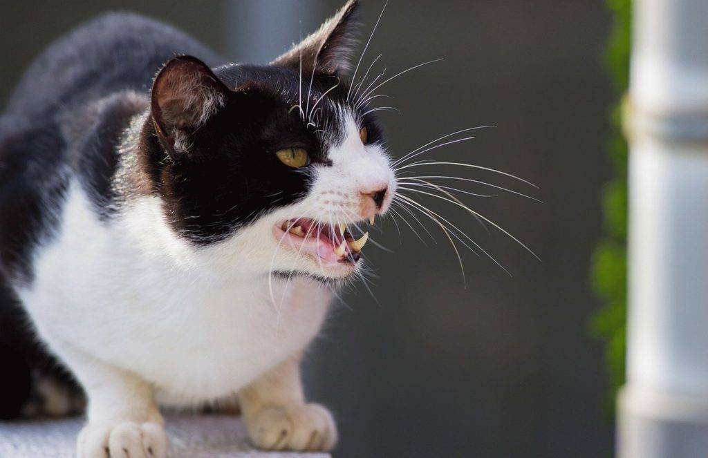 Кот рычит или шипит, когда кто-то посягнул на территорию, которую он считает своей. Это могут быть гости, дети, другие животные. В этой ситуации может помочь стерилизация, но на 100 % эффективность рассчитывать не приходится.