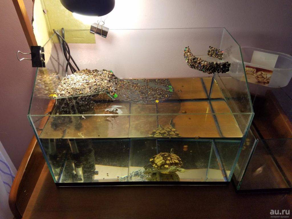 Слишком маленький объем акватеррариума способствует быстрому загрязнению воды, от этого красноухие черепахи могут заболеть.