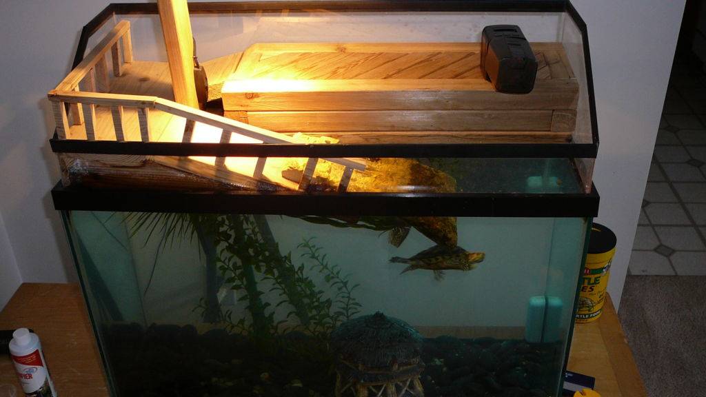 Красноухая черепаха считается плавающей рептилией. Кроме воды, она может находиться еще и на суше, выползая, чтобы погреться. Этот участок должен занимать 25% от общей площади террариума. Прикреплять островок следует к основанию резервуара.