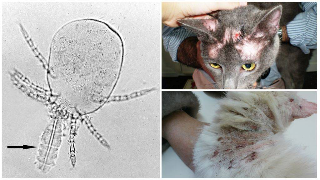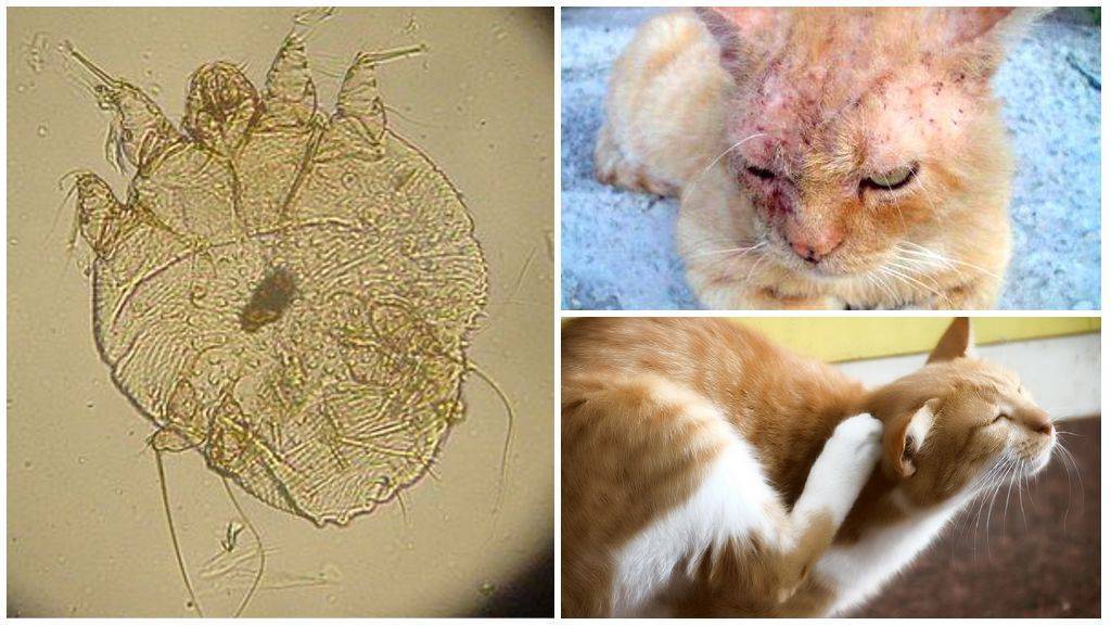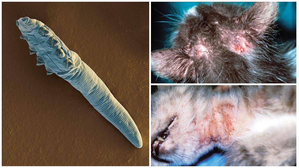 Существует и еще один вид клеща, также живущий под кожей у кошки — чесоточный. Заболевание носит название нотоэдроз, а его проявления схожи с демодекозом. Животных беспокоит зуд, шерсть выпадает.