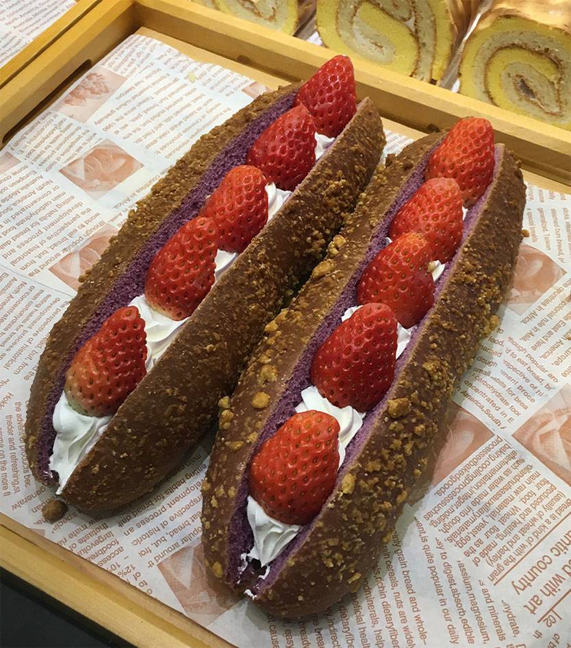 Десерт абсолютно безвкусный: внизу чёрный cо сладким картофелем хлеб, сливки без сахара, а у клубники все силы ушли в размер, цвет и запах – сама она пресная.
