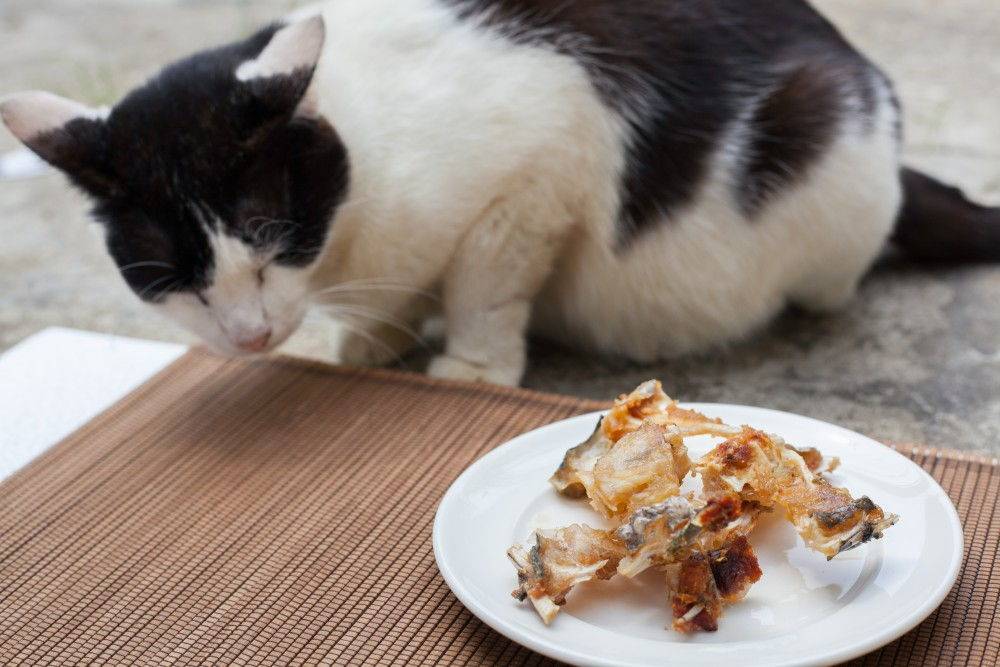 Можно ли использовать кости в кошачьей еде? Однозначный ответ на этот вопрос — нет. Всеми силами надо стараться их избегать, опасаясь удушья, блокирования пищеварительного тракта или его прокола, так как зубы у кошек не настолько мощные, как у собак, чтобы перемалывать кости без угрозы для своего здоровья. Хотя сами кошки, как правило, не прочь погрызть кости, выуживая оттуда все кусочки мяса, которые остались.