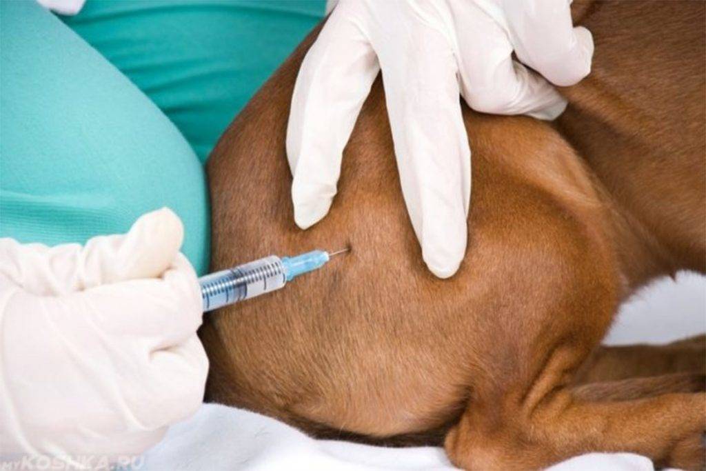 Инъекция препарата на основе имидокарба от пироплазмоза