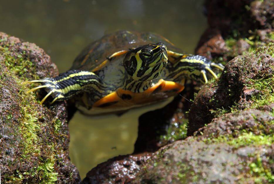 Еще одни черепашки, пользующиеся популярностью на территории Америки. При правильном уходе за красноухим питомцем можно продлить его жизнь до 40 лет.