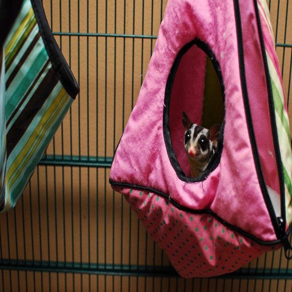 Сахарный поссум или сахарная сумчатая летяга должна где-то жить. Для содержания в домашних условиях необходимо приобрести или построить объёмную клетку. Длина тела животного 17 см, хвост до 20 см. Зверёк небольшой, но очень активный.