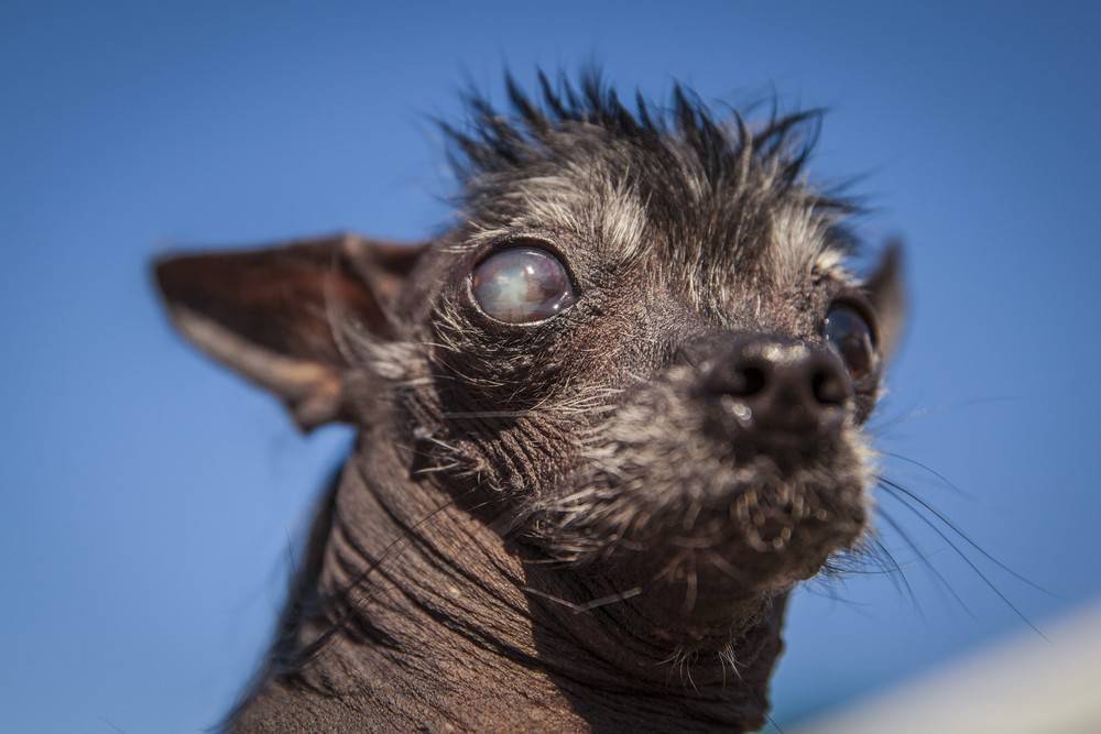 Лидером в таком нестандартном топе бесспорно является , а заслужила она такой «почет» благодаря псу этой породы по кличке Сэм из Америки. Взглянув на него, сразу же хочется отвести глаз. Это лысая собачонка с морщинистой и бородавчатой кожей, где кое-где можно встретить клочки седых волос.