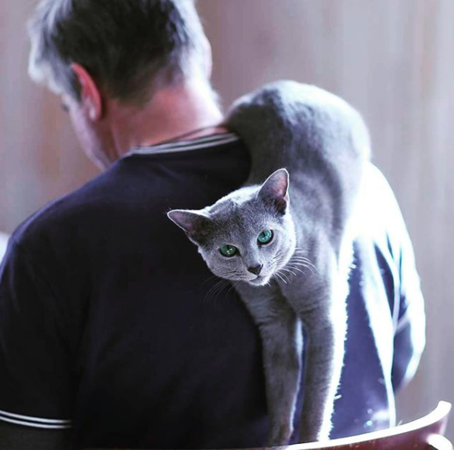 Представители русской голубой породы сильно привязываются к одному члену семьи. Объектом внимания и обожания питомца становится тот, кто кормит его и проводит с ним больше времени