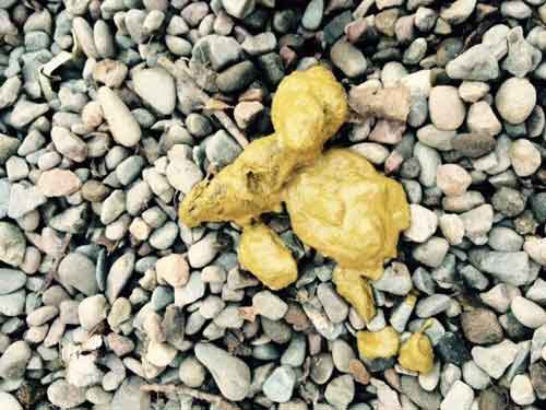 При употреблении большого количества жиров или нарушении их расщепления (снижении активности поджелудочной железы), мы наблюдаем рыхлый желтый кал с присутствием серого налёта. Такой жирный маслянистый стул называют стеатореей. Непереваренный жир в кишечнике обволакивает пищевой комок и не дает ферментам расщепить белки и углеводы. Поэтому при стеаторее часто возникает и креаторея – недостаточное переваривание мышечных волокон. Кал при панкреатите имеет характерный оттенок серо-зеленого цвета, почти не смывается.