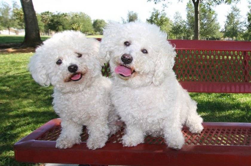 Еще одна порода исключительно белого цвета, но в отличие от мальтезе у бишонов длинная шерсть кучерявится. Их предки обитали на средиземноморском побережье еще в тринадцатом-четырнадцатом веках.
