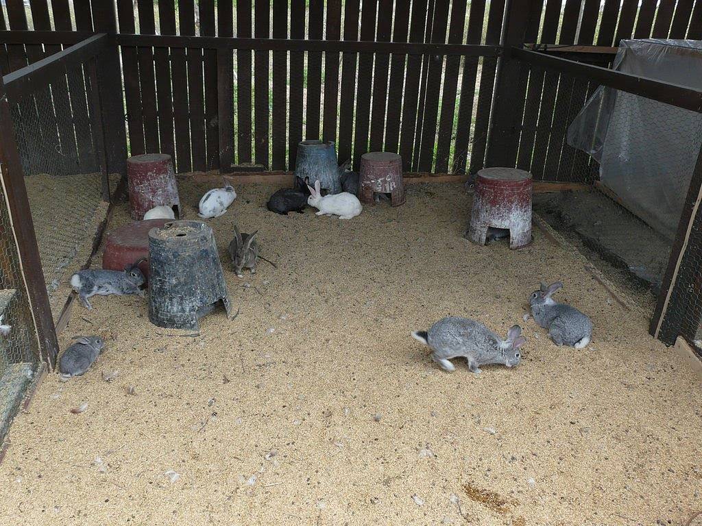 - В случае проживания животных в сарае без клеток, необходимо заранее позаботиться о наличии раздельных секций для молодняка, взрослых особей, крольчихи с крольчатами.