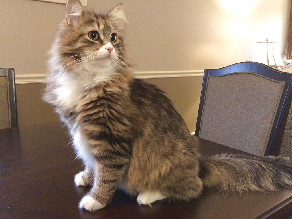 - Хвост умеренной длины – у большинства кошек достигает области лопаток. Основание широкое, кончик скругленный.