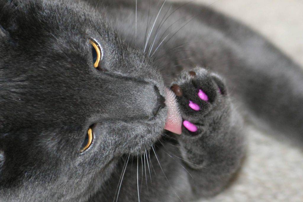 Кошке не всегда нравится новый маникюр, и она активно грызет искусственные когти. Как правило, на привыкание к накладкам уходит 2-3 дня.