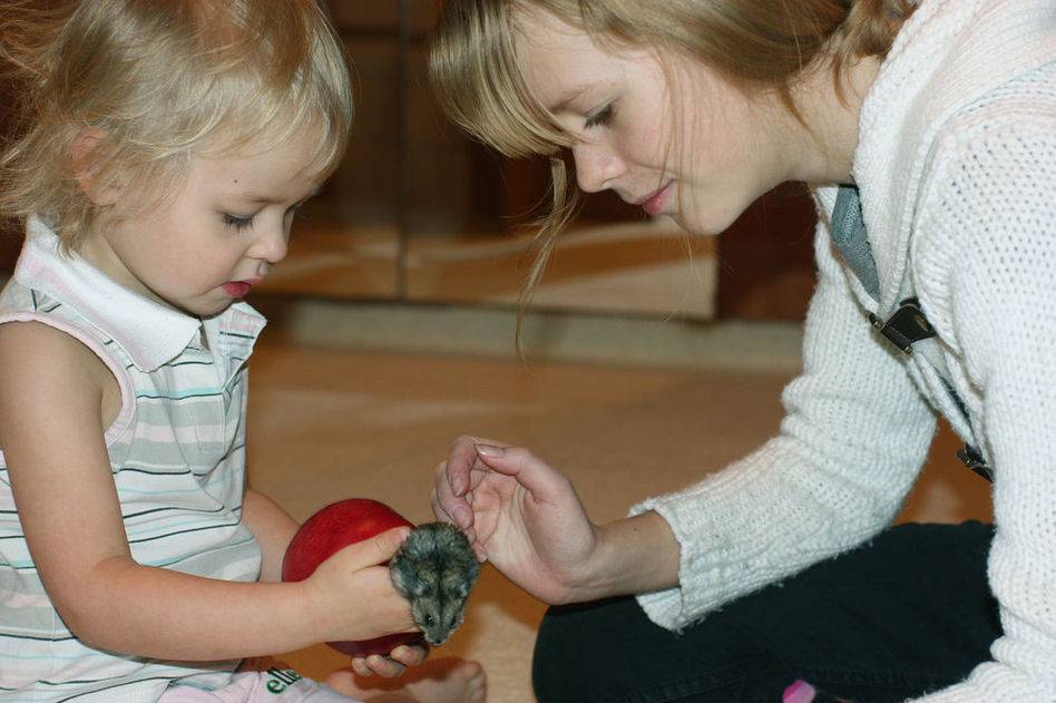 Хомяк быстро привыкает к рукам. Но также быстро и отвыкает от них. Поэтому, если хотите, чтобы питомец не пугался ваших ласк, чаще берите его в ладони и держите аккуратно и нежно, не сжимая и не причиняя ему боль. Это должно быть очень приятно не только вам, но и ему. Можно приучить зверька брать из ваших пальцев пищу. Хомяк может научиться реагировать на свое имя, вылезать из домика, подбегать на зов. Но это достигается лишь при постоянном с ним «общении».
