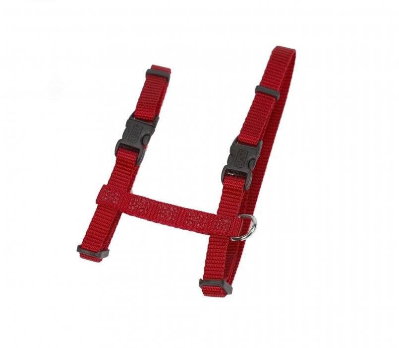 В результате получается шлейка в форме буквы Н. Длина ремней подгоняется по пушистому любимцу. Перемычка должна располагаться на спине. В готовом виде шлейка выглядит примерно вот так.